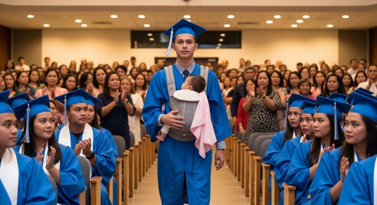 TINAWANAN NILA ANG ANAK KO NANG UMAKYAT SIYA SA GRADUATION STAGE NA MAY BITBIT NA SANGGOL—MAY BUMULONG PA NA “MANA SA INA, SINIRA ANG BUHAY”—NGUNIT ANG MGA SUMUNOD NA SINABI NIYA ANG NAGPATAHIMIK AT NAGPAIYAK SA BUONG STADIUM!
