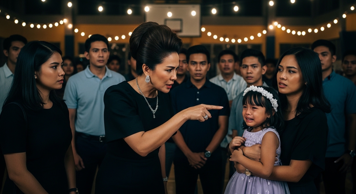 “Huwag mong sirain ang gabi ng mga buong pamilya,” patuloy ni Evelyn, walang pakialam sa mga nakatingin. “Hindi ito charity event para sa mga ulila. Umuwi na lang kayo, Sarah. Wala na siyang tatay na maglalakad sa pintong ‘yan.”
